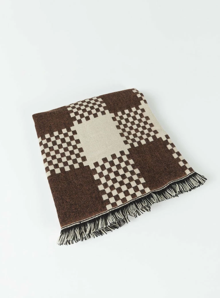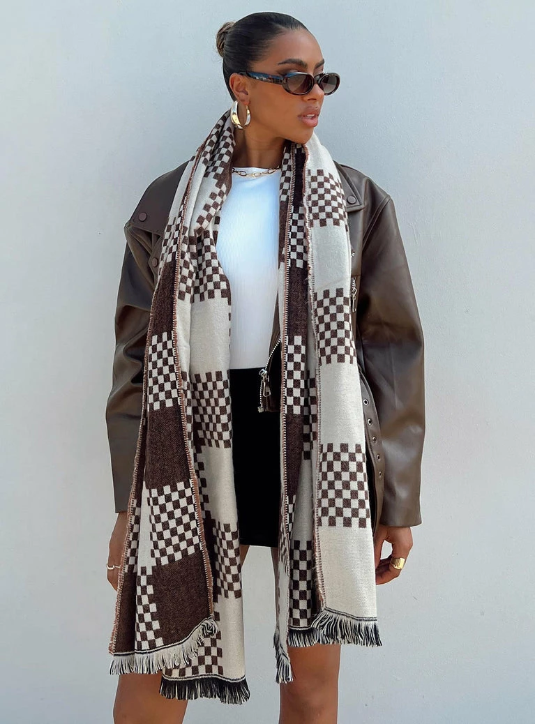 Princess Polly Ruthie Check Scarf Brown / White Brown